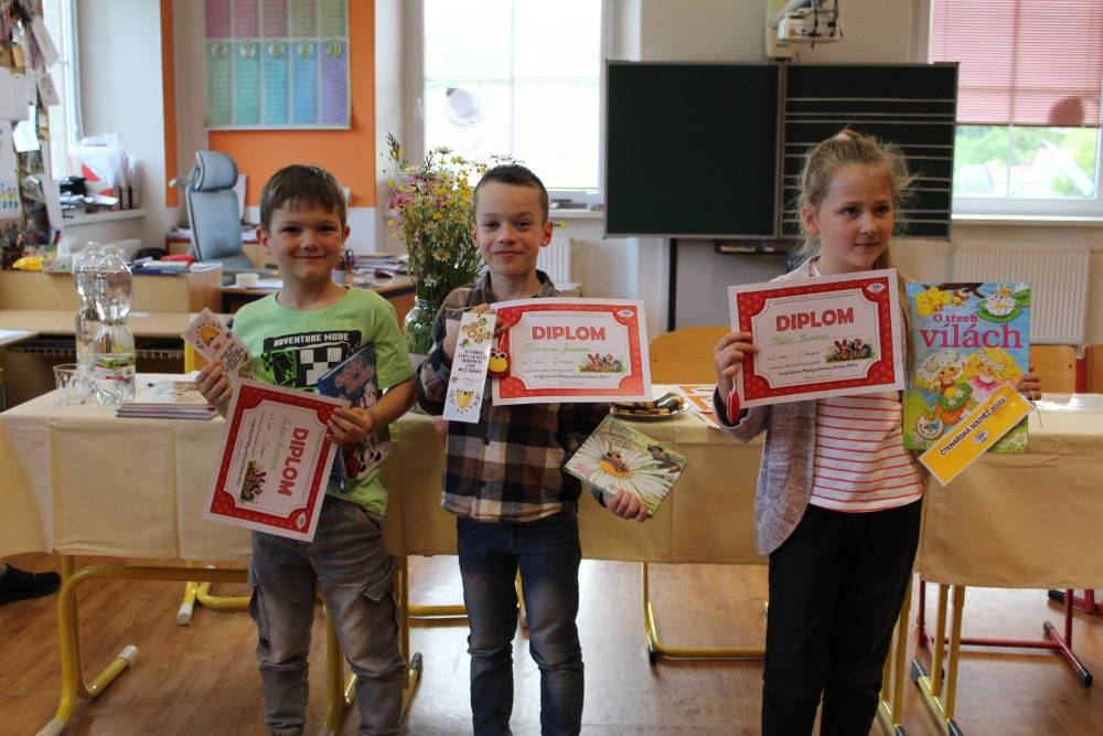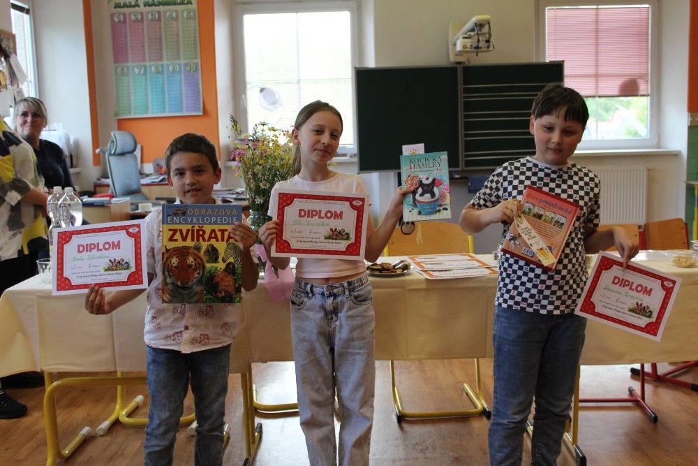 Okresní kolo čtenářské soutěže30.06.2025 Čtenářská soutěž na Základní škole v Písečné se i letos stala slavností knihy, fantazie a tvořivosti. Děti ze šesti základních škol se během školního roku ponořily do příběhů Eduarda Petišky a obdivovaly ilustrace Zdeňka Milera. Zábavné i poučné dobrodružství zakončilo okresní kolo soutěže, které proběhlo 27. května 2025. Nechybělo nadšení, napětí ani radost z vítězství. Čtenářská soutěž na základní škole v Písečné je již dlouholetou tradicí. Letos nesla název Spisovatel Eduard Petiška a ilustrátor Zdeněk Miler. Po celý školní rok děti četly knihy Eduarda Petišky a poznávaly ilustrace Zdeňka Milera. Nejoblíbenějšími postavami byly krteček, pohádkový dědeček, hrdinové řeckých bájí či Alenka a Martínek. Každá čtenářská soutěž probíhá ve dvou kolech. Školní kolo probíhá na jednotlivých školách. Odtud postupují dva nejlepší žáci z každé kategorie do okresního kola, které proběhlo na ZŠ v Písečné 27.5.2025. Zúčastnili se žáci z malotřídních škol: ZŠ Písečná, ZŠ Černá Voda, ZŠ Stará Červená Voda, ZŠ Skorošice, ZŠ Bernartice a také žáci z plně organizované školy v Supíkovicích. Akce byla uspořádána v rámci projektu MAP Jesenicko IV ve spolupráci se ZŠ a MŠ Písečná. Výherci: I. kategorie (1. ročník) 1. místo: Martin Juris (ZŠ Písečná) 2. místo: Mariia Semenets (ZŠ Černá Voda) 3. místo: Lukáš Richter (ZŠ Písečná) II. kategorie (2. + 3. ročník) 1. místo: Ella Temňáková (ZŠ Písečná) 2. místo: Karel Záhorský (ZŠ Bernartice) 3. místo: Damián Šarman (ZŠ Písečná) III. kategorie (4. + 5. ročník) 1. místo: Viola Fidrichová (ZŠ Stará Červená Voda) 2. místo: Adam Šebesta (ZŠ Písečná) 3. místo: Filip Zeleňák (ZŠ Bernartice) Výhercům gratulujeme.
