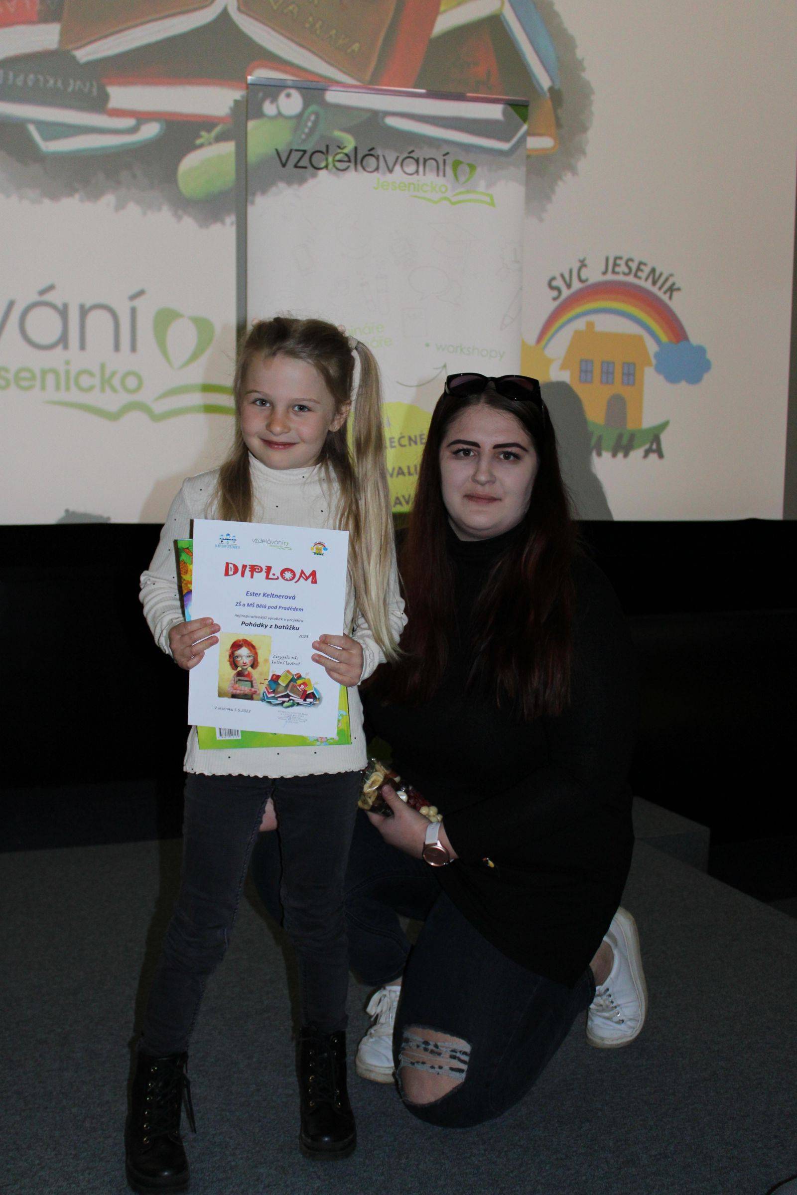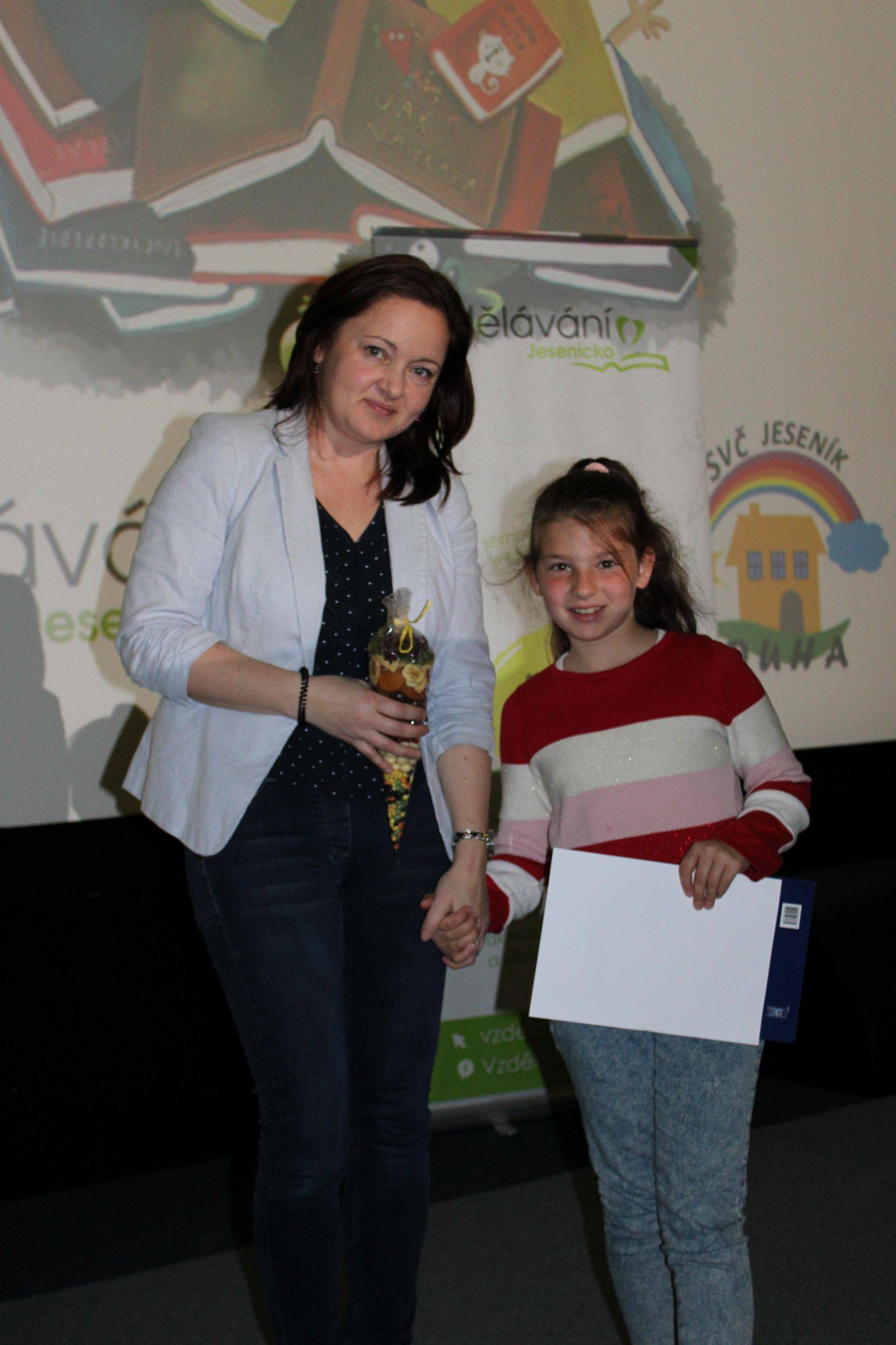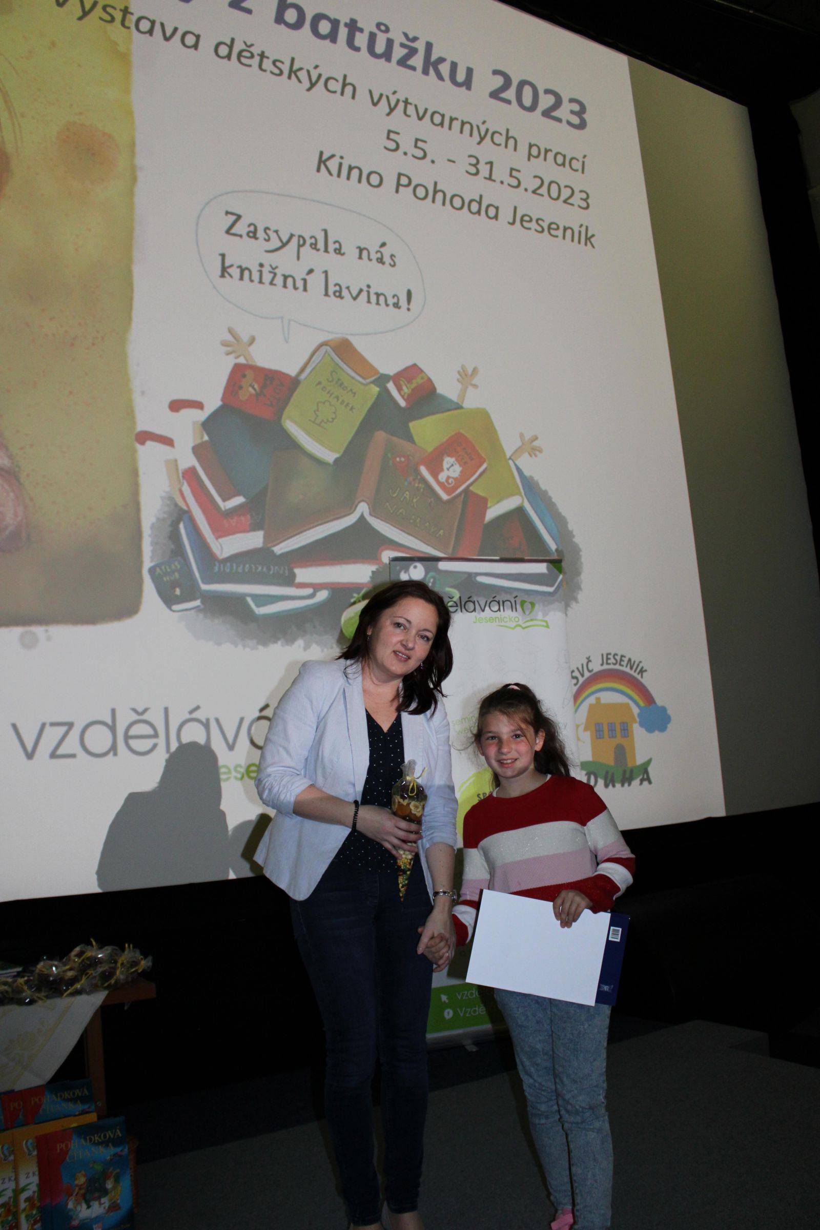 Vyhlášení soutěže " Pohádky z batůžku"11.05.2023 Jesenicko se stalo krajem knihomilců. Přes 174 dětí z MŠ a ZŠ se zapojilo do čtenářské soutěže. Již tradičně zaplnily jesenické kino děti ze škol a školek na vyhlášení výtvarné soutěže Pohádky z batůžku, které se uskutečnilo 5.5.2023. Projekt pod taktovkou Odboru školství, kultury a sportu MěÚ Jeseník měl za úkol podpořit čtení dětí s rodiči. Batůžky plné pohádkových knížek čekaly letos na předškoláky a druháky ze škol a školek Jesenicka. Maminky, tatínci, prarodiče, všichni spolu četli pohádky a podle příběhů tvořili s dětmi krásné obrázky a prostorové výrobky. Všechny nádherné práce dětí se sešly v SVČ DUHA Jeseník, kde je výtvarnice vyhodnotily a vystavily v jesenickém kině. Děti za odměnu dostaly zdravé sladkosti a záložku do knížky. Nejinspirativnější výrobky byly oceněny pohádkovými knížkami. Vyhlašování doprovodila Beatka ze ZŠ Bělá pod Pradědem skladbou na příčnou flétnu. Za odměnu dostali malí čtenáři po vyhlášení výsledků a předání diplomů promítání pohádky. Výrobky dětí si můžete prohlédnout na výstavě v kině do konce května. Akce se uskutečnila za spolupráce Vzdělávání Jesenicka, SVČ Duha Jeseník a Odboru školství, kultury a sportu MěÚ Jeseník. zdroj foto: Vzdělávání Jesenicko | |
