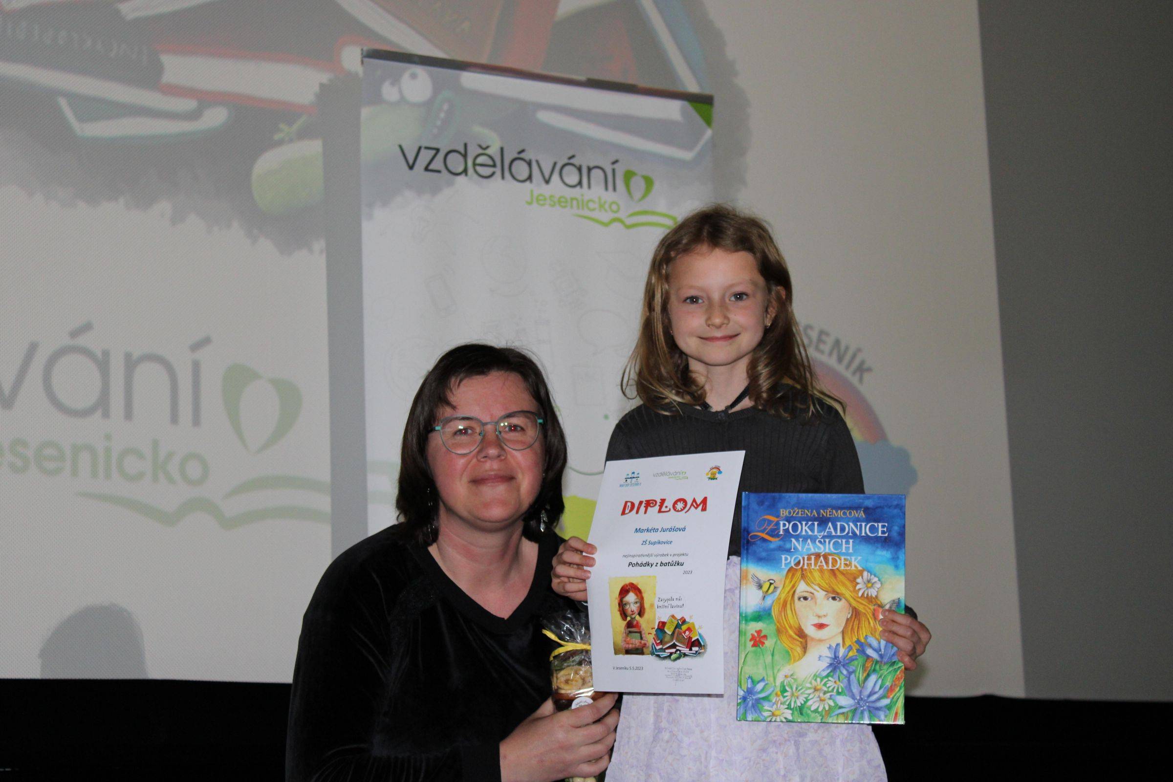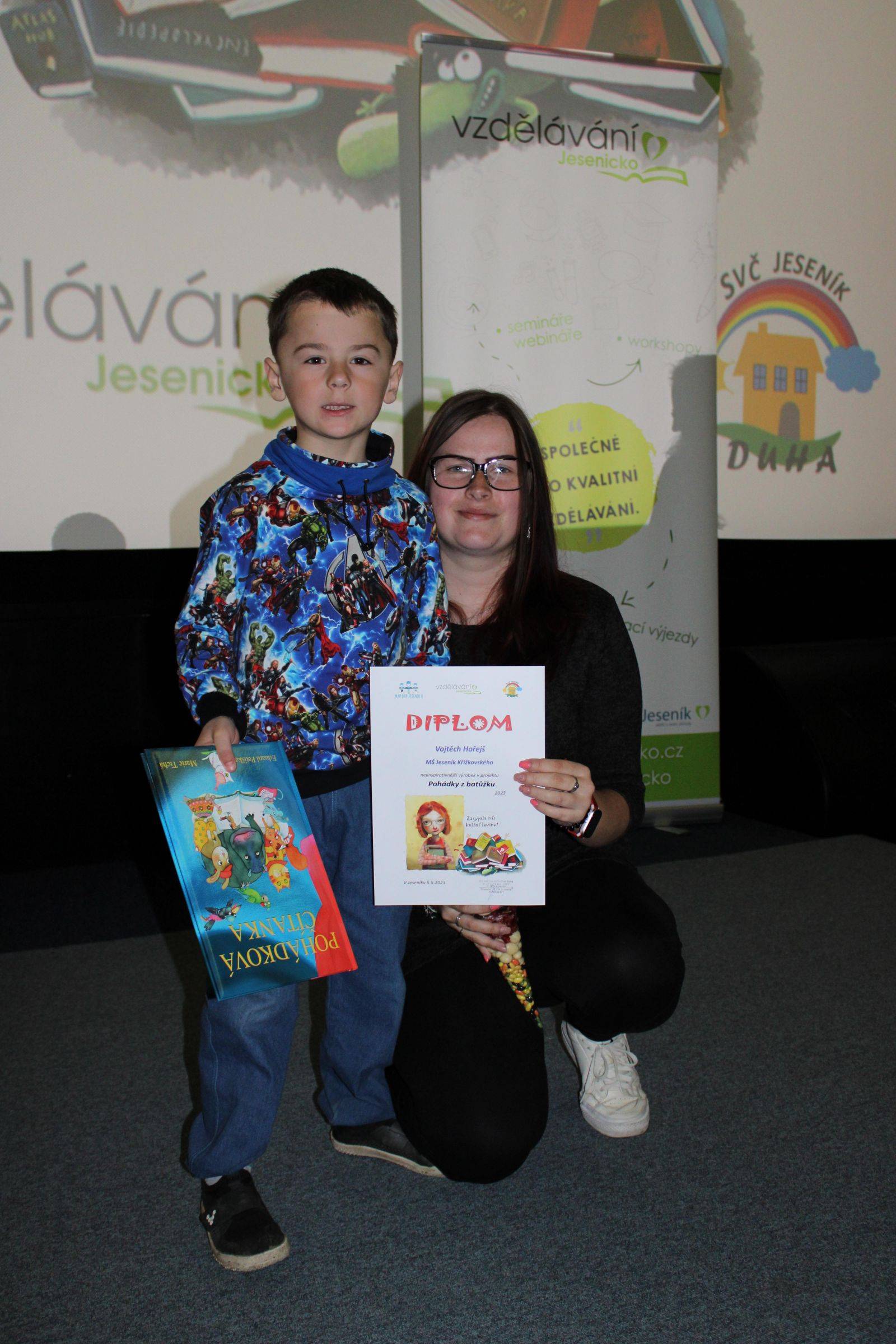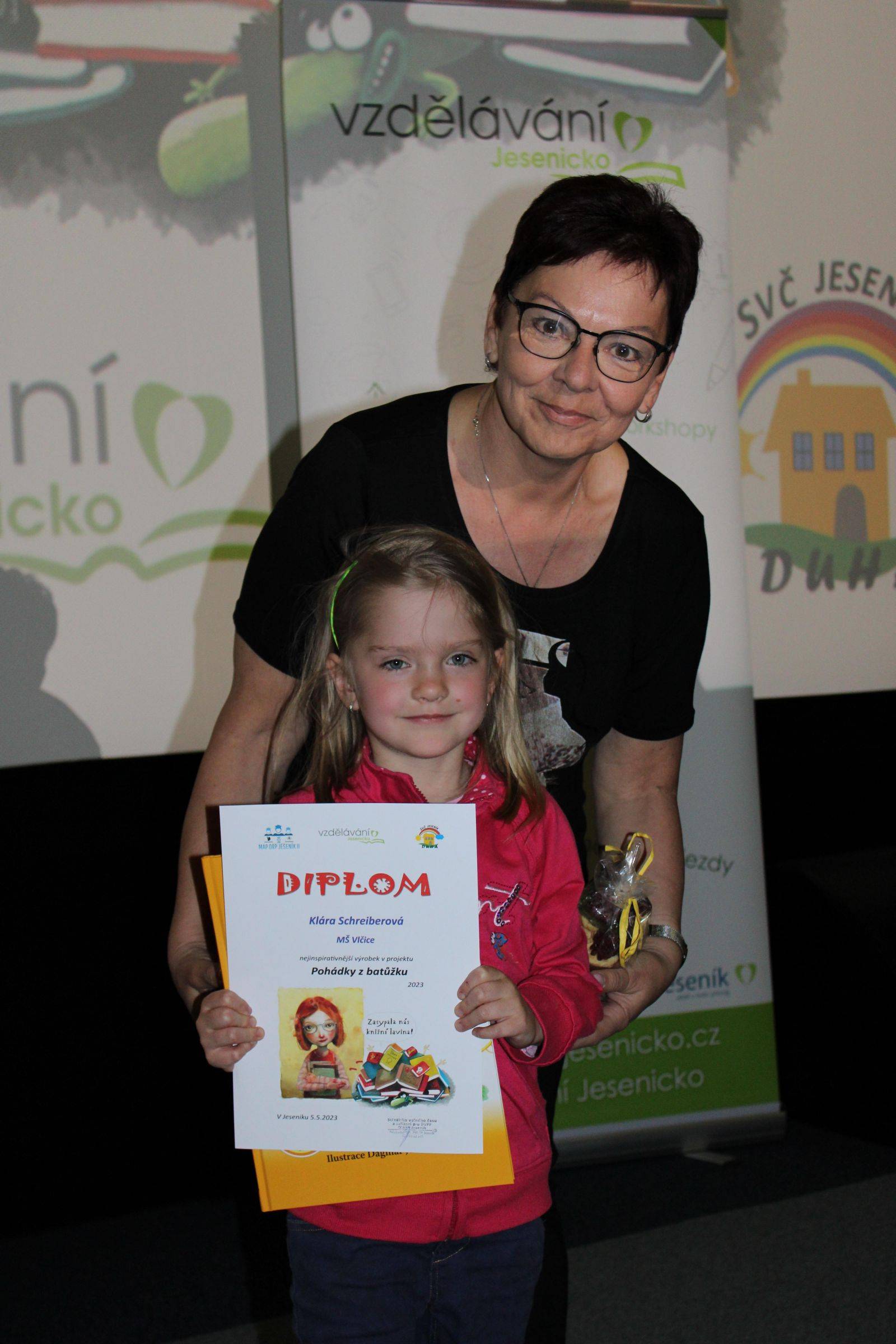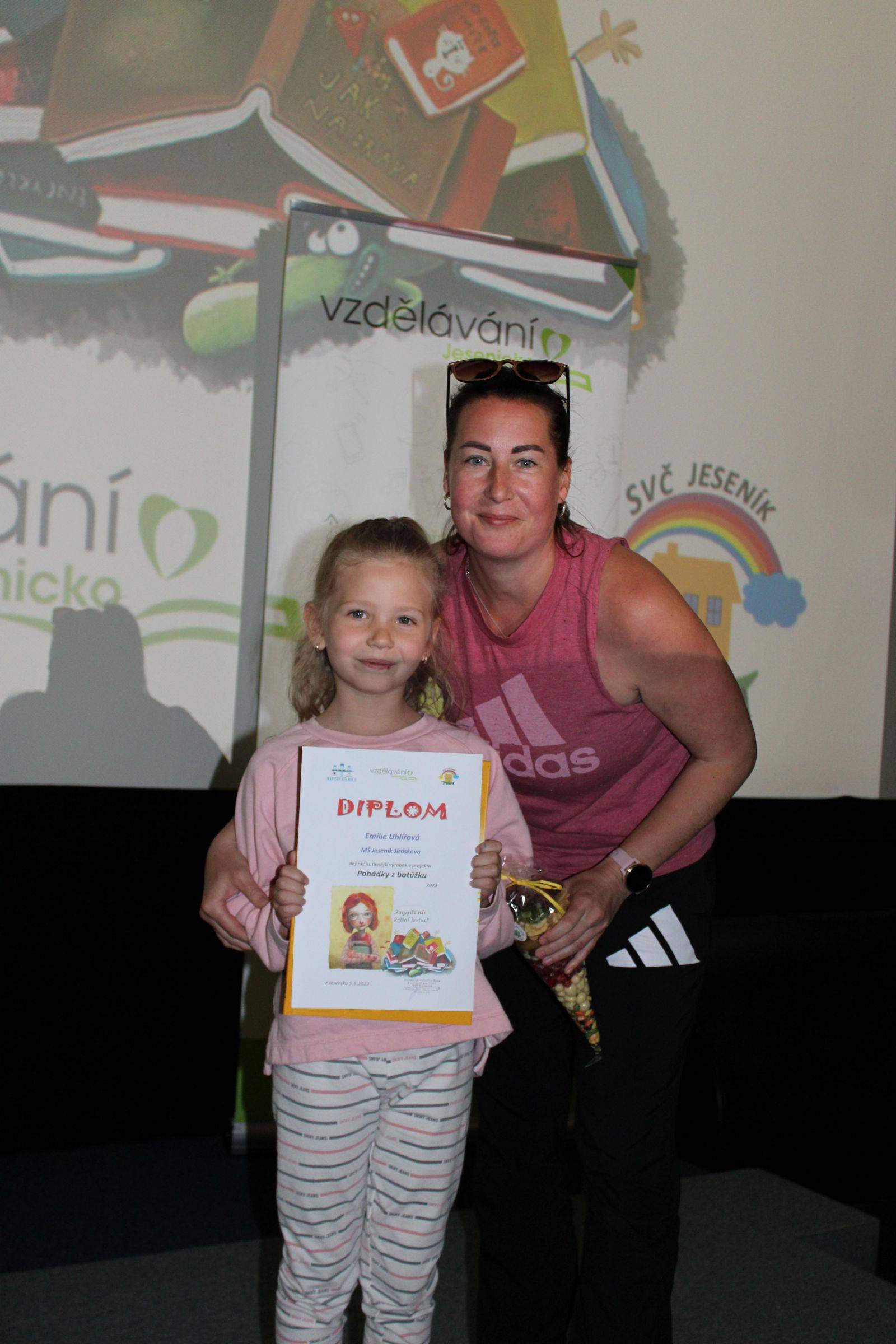 Vyhlášení soutěže " Pohádky z batůžku"11.05.2023 Jesenicko se stalo krajem knihomilců. Přes 174 dětí z MŠ a ZŠ se zapojilo do čtenářské soutěže. Již tradičně zaplnily jesenické kino děti ze škol a školek na vyhlášení výtvarné soutěže Pohádky z batůžku, které se uskutečnilo 5.5.2023. Projekt pod taktovkou Odboru školství, kultury a sportu MěÚ Jeseník měl za úkol podpořit čtení dětí s rodiči. Batůžky plné pohádkových knížek čekaly letos na předškoláky a druháky ze škol a školek Jesenicka. Maminky, tatínci, prarodiče, všichni spolu četli pohádky a podle příběhů tvořili s dětmi krásné obrázky a prostorové výrobky. Všechny nádherné práce dětí se sešly v SVČ DUHA Jeseník, kde je výtvarnice vyhodnotily a vystavily v jesenickém kině. Děti za odměnu dostaly zdravé sladkosti a záložku do knížky. Nejinspirativnější výrobky byly oceněny pohádkovými knížkami. Vyhlašování doprovodila Beatka ze ZŠ Bělá pod Pradědem skladbou na příčnou flétnu. Za odměnu dostali malí čtenáři po vyhlášení výsledků a předání diplomů promítání pohádky. Výrobky dětí si můžete prohlédnout na výstavě v kině do konce května. Akce se uskutečnila za spolupráce Vzdělávání Jesenicka, SVČ Duha Jeseník a Odboru školství, kultury a sportu MěÚ Jeseník. zdroj foto: Vzdělávání Jesenicko | |
